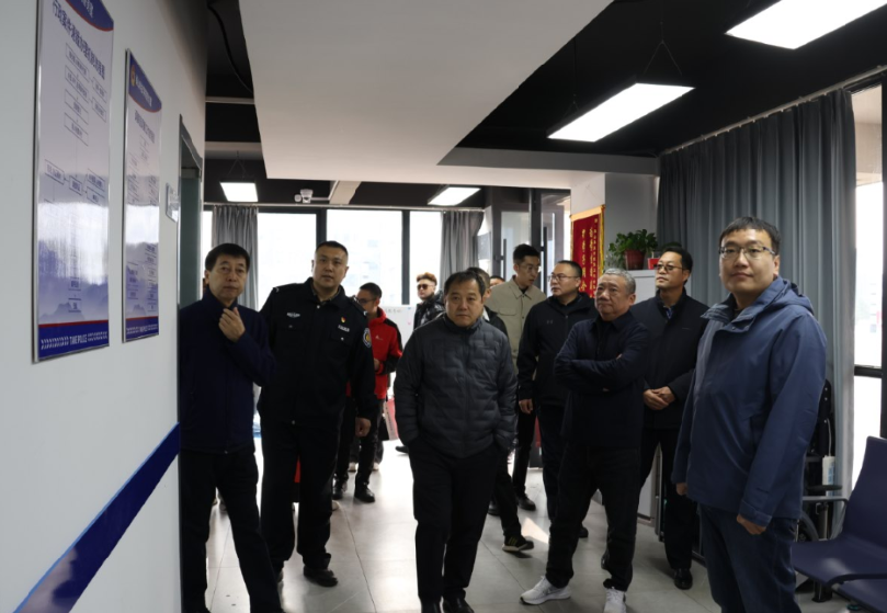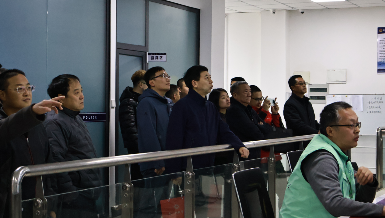 与会人员现场观摩泰山科技学院警务室、安全教育基地、消安一体化安全指挥中心、学生公寓智慧安防等校园安全防控体系建设情况,了解校园安全管理一体化有关进展。